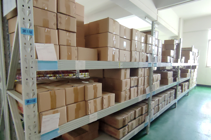 圣元變壓器的員工把常規(guī)環(huán)形變壓器包裝好存放在貨架上,以便客戶急需。