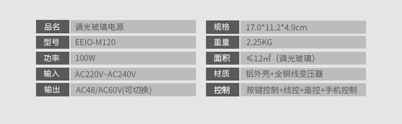 M120鋁殼調(diào)光玻璃電源
